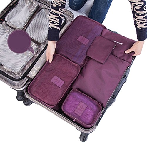 SZTARA Travel Organisers Essential Bags-in-Bag Travel Storage Waterproof Nylon Drawstring Dry Bag Clothes Suitcase Luggage Storage Bags Set of 6 BIG SPACE Purple