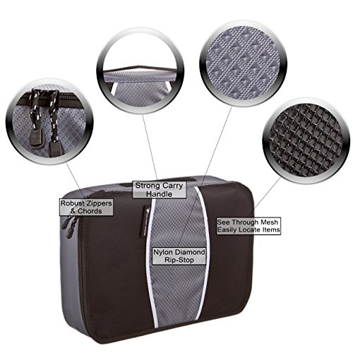 MADE FROM TOP QUALITY NYLON AND MESH – this mesh front allows you to clearly see what’s in the bags, and they come in three sizes – • LARGE (17.50 inches x 12.75 inches x 3.25 inches) • MEDIUM (13.75 inches x 9.75 inches x 3 inches) • SMALL (11.00 inches x 6.75 inches x 3 inches)