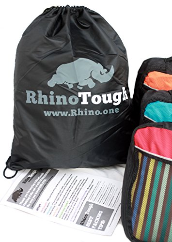 Value Set of 3 Premium Quality Packing Cubes With Extra Strong Rhino Tough Zips – Medium Sized, Deep, Colour-Coded Travel Cubes Plus Free Waterproof Laundry or Shoe Bag