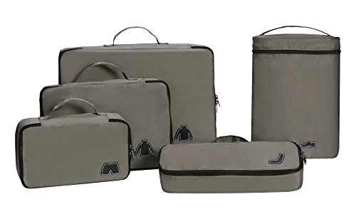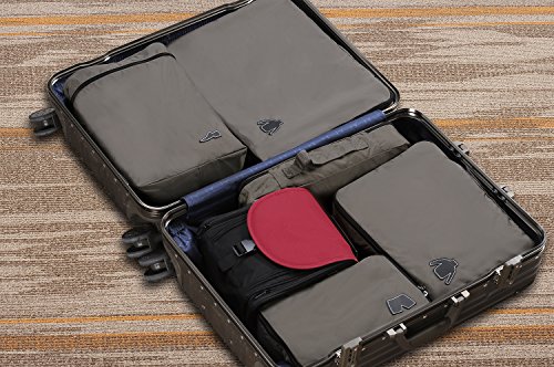 Water Resistant Travel Packing Cube Organiser Bags No Mesh 5-Piece Set with Shoe Bag for Backpacking Carry on Suitcase Luggage for men (Large/Medium/Small/Slim, Dark Khaki)